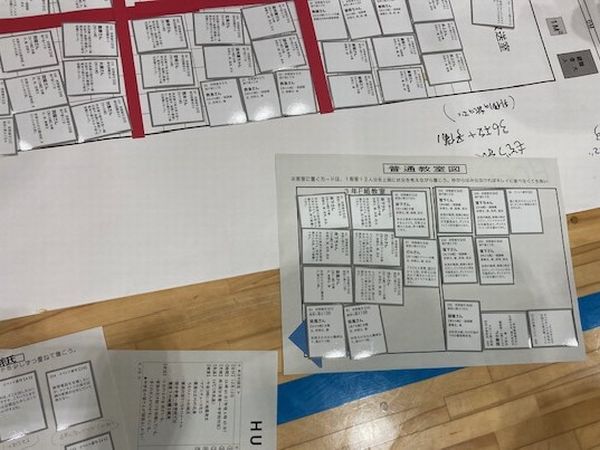 冬の12月12日午後4時に震度6強の地震が発生、当日は小雨で2/3の生徒が学校に残っている。といった状況を想定し、ゲームを進めました。