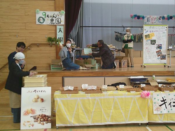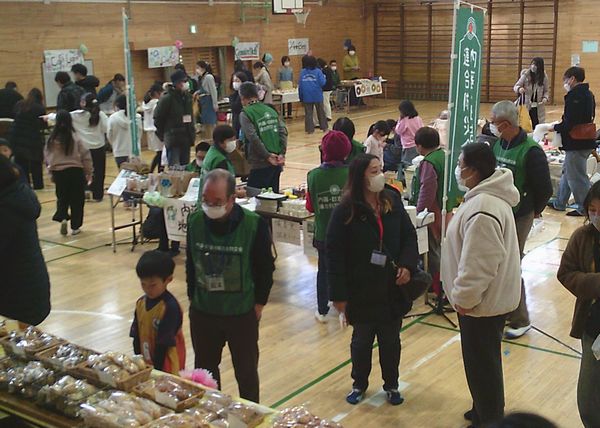 1月24日(土)、第九小学校のコミュニティスクール協議会主催の「9ちゃんひろば」に参加しました。会場は九小の体育館・校庭を使用し、体育館では6年生が栽培した藍を使った染め物の展示・販売の他、恋ヶ窪駅周辺の商店、特に食べ物を扱うお店が多く出店するイベントでした。