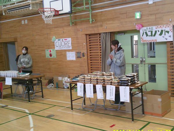当日は手伝いで参加いただいた会員から提供を受けた紙袋(新聞紙や包装紙を利用し作成したもの)にアルファ-化米を入れて来場者へ渡しました。市より提供を受けた備蓄食料は2箱(合計100食)であったため比較的早い時間に配布を終了できました。